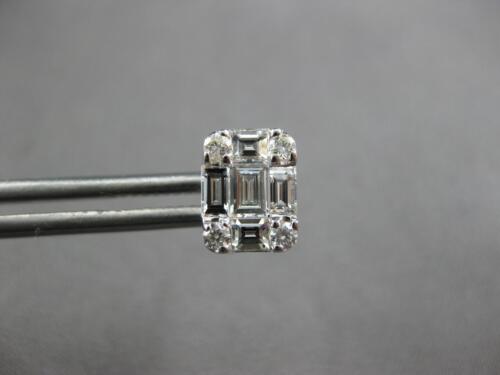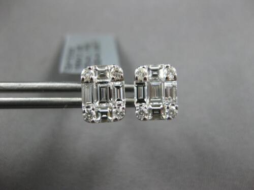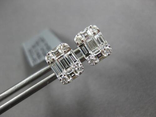 .97CT DIAMOND 18KT WHITE GOLD 3D ROUND & BAGUETTE INVISIBLE SQUARE STUD EARRINGS