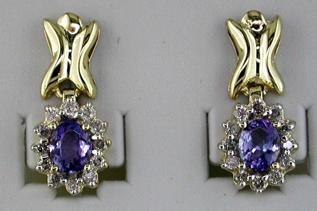 14KT YELLOW GOLD HANGING EARRINGS. 3D BUTTERFLY DESIGN. ROUND DIAMONDS ARE F/G COLOR, VSSI CLARITY .32 CARATS.AAA OVAL TANZANITES ARE .66 CARATS. WRITTEN APPRAISAL AVAILABLE. COMES IN A PRESENTABLE GIFT BOX.