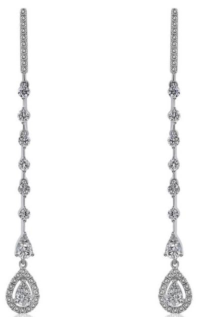 .89CT DIAMOND 14KT WHITE GOLD 3D CLASSIC BY THE YARD TEAR DROP HANGING EARRINGS