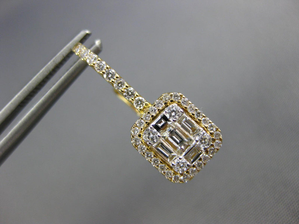 .89CT DIAMOND 18KT YELLOW GOLD 3D ROUND & BAGUETTE SQUARE HALO HANGING EARRINGS