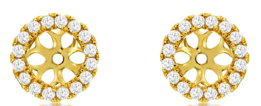 ESTATE 14KT YELLOW GOLD JACKET EARRINGS. 3D DOUBLE HALO ROUND DESIGN. DIAMONDS ARE F/G COLOR, VSSI CLARITY 0.29 CARATS. WRITTEN APPRAISAL AVAILABLE. COMES IN A PRESENTABLE GIFT BOX.