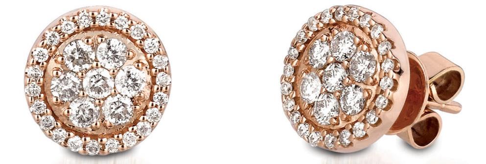 ESTATE 14KT ROSE GOLD STUD EARRINGS. 3D CLASSIC FLOWER HALO DESIGN. DIAMONDS ARE F/G COLOR, VSSI CLARITY 0.60 CARATS. WRITTEN APPRAISAL AVAILABLE. COMES IN A PRESENTABLE GIFT BOX.