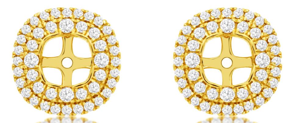 ESTATE 14KT YELLOW GOLD JACKET EARRINGS. 3D DOUBLE HALO SQUARE DESIGN. DIAMONDS ARE F/G COLOR, VSSI CLARITY 0.63 CARATS. WRITTEN APPRAISAL AVAILABLE. COMES IN A PRESENTABLE GIFT BOX.