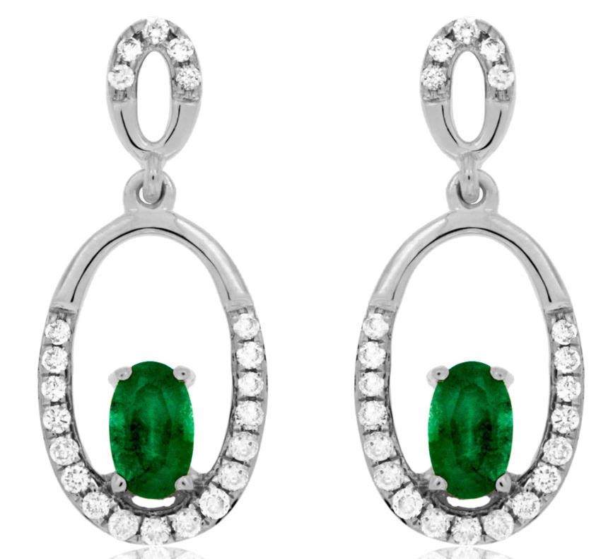 ESTATE 14KT WHITE GOLD HANGING EARRINGS. 3D CLASSICDESIGN. ROUND DIAMONDS ARE F/G COLOR, VSSI CLARITY 0.20 CARATS. OVAL AAA EMERALD ARE 0.45 CARATS.WRITTEN APPRAISAL AVAILABLE. COMES IN A PRESENTABLE GIFT BOX.