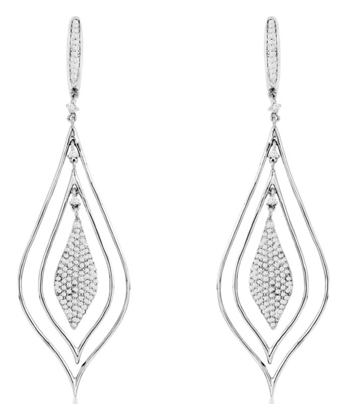 ESTATE14KT WHITE GOLD LEVERBACK HANGING FUN EARRINGS. 3D MULTI LEAFDESIGN. DIAMONDS ARE F/G COLOR, VSSI CLARITY 0.90CARATS.WRITTEN APPRAISAL AVAILABLE. COMES IN A PRESENTABLE GIFT BOX.