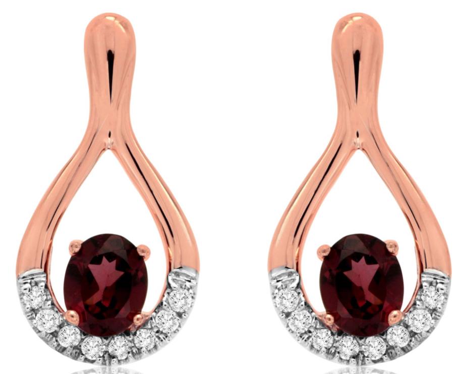 ESTATE 14KT ROSE GOLD HANGING EARRINGS. 3D TEAR DROP DESIGN. ROUND DIAMONDS ARE F/G COLOR, VSSI CLARITY 0.12 CARATS. AAA OVAL RHODOLITES ARE 0.84 CARATS. WRITTEN APPRAISAL AVAILABLE. COMES IN A PRESENTABLE GIFT BOX.