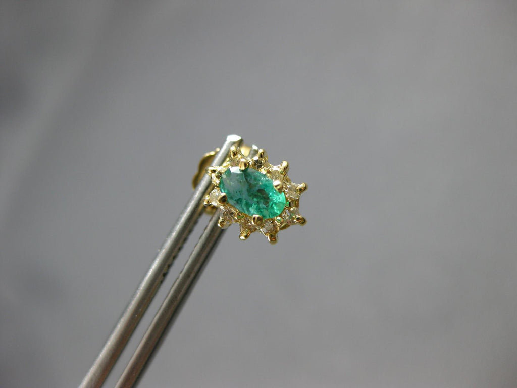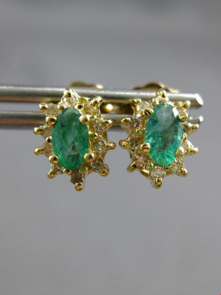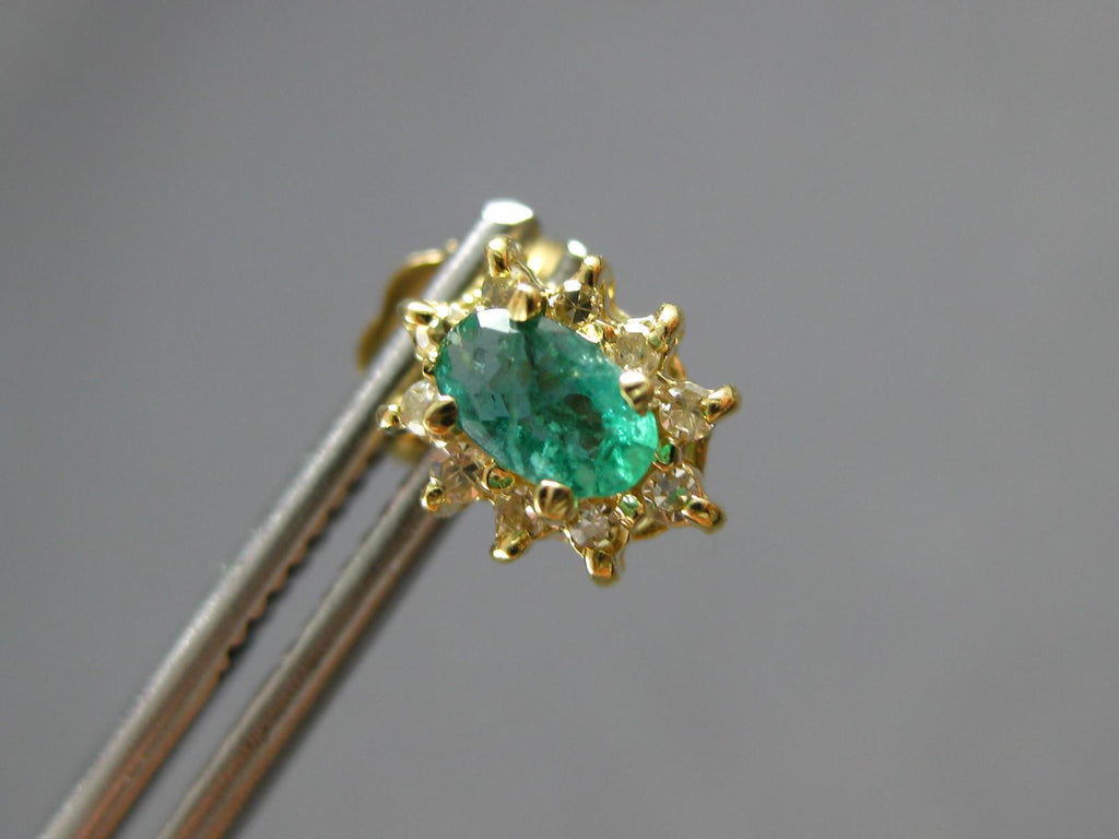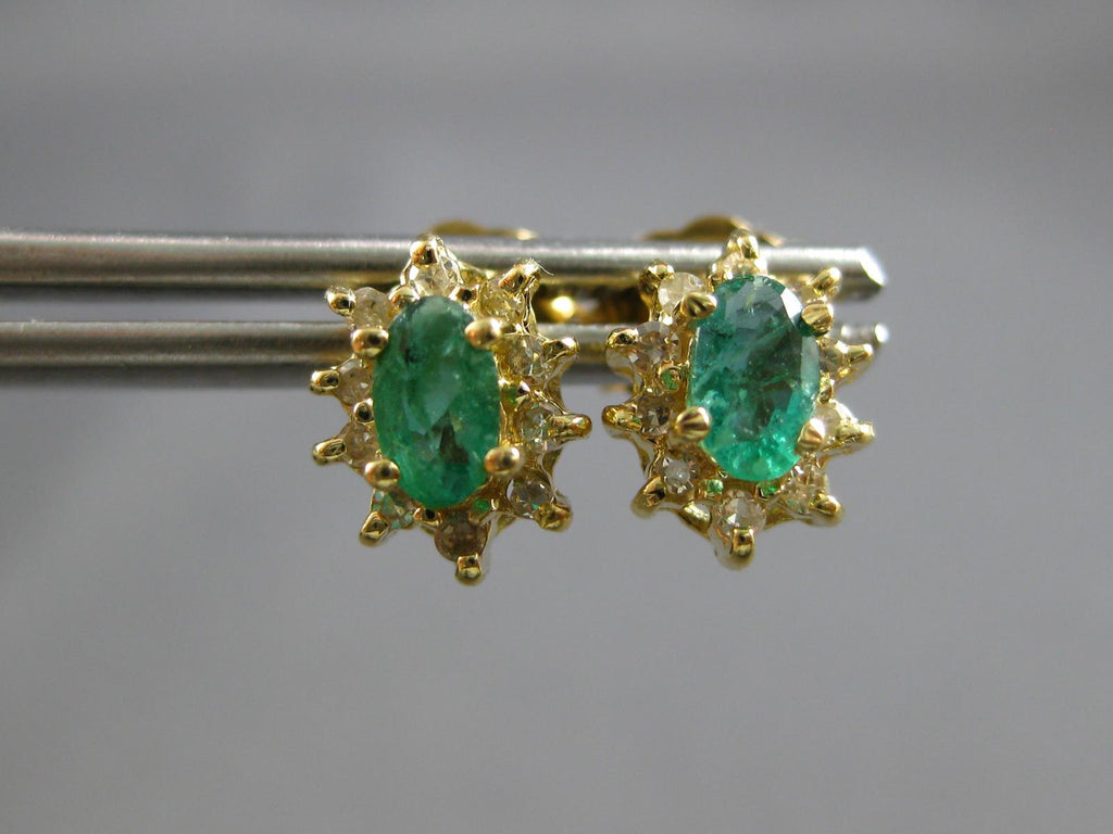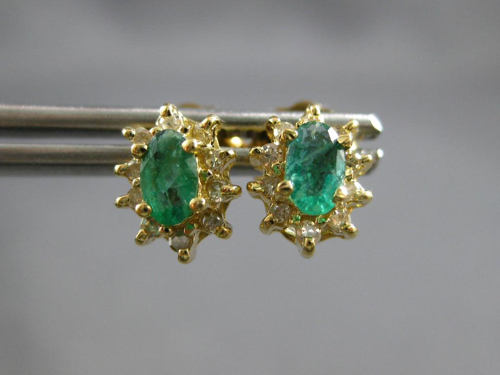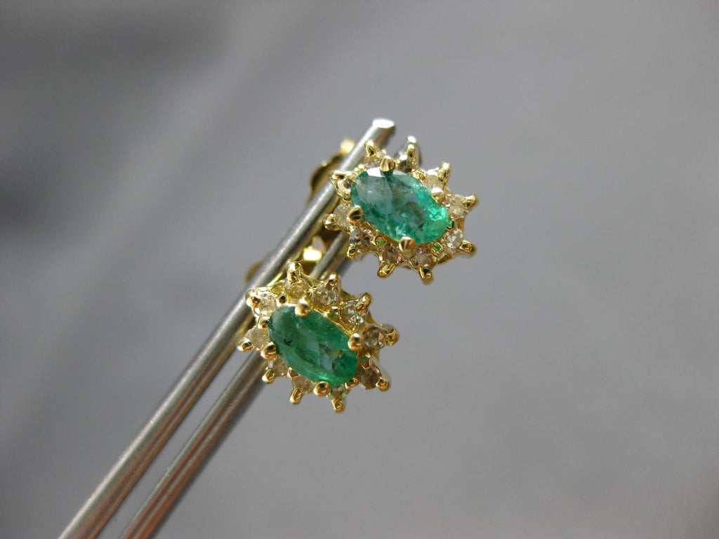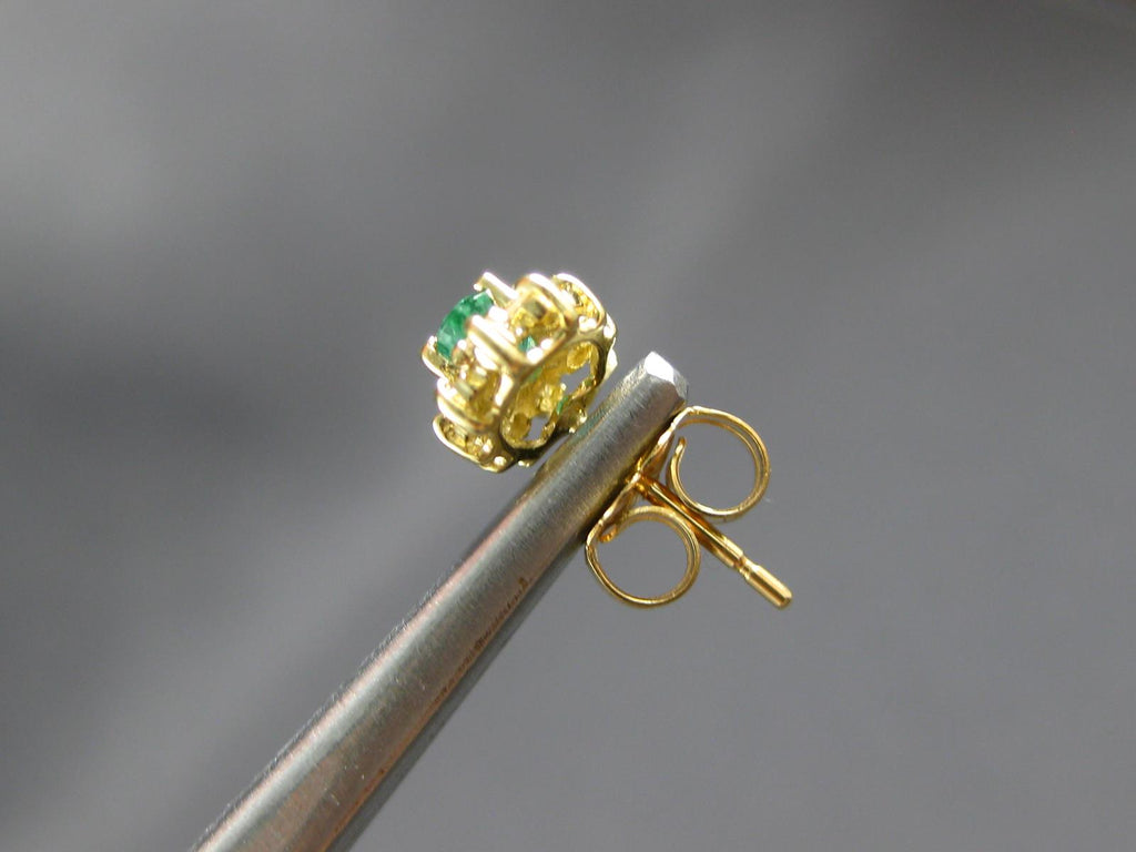 ESTATE 1.01CT DIAMOND & AAA EMERALD 14KT YELLOW GOLD FLOWER STUD EARRINGS #27586