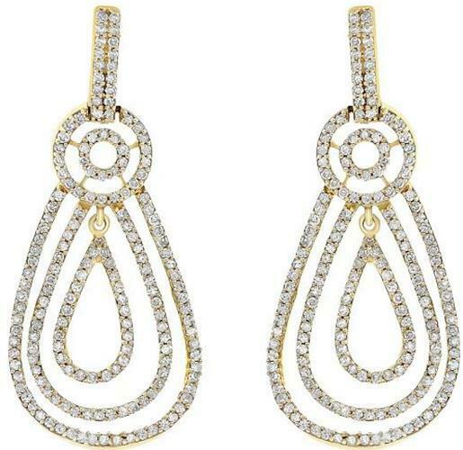 ESTATE 14KT YELLOWGOLD FUN HANGINGEARRINGS. 3D MULTI ROW TEAR DROPDESIGN. DIAMONDS ARE F/G COLOR, VSSI CLARITY 1.02CARATS.WRITTEN APPRAISAL AVAILABLE. COMES IN A PRESENTABLE GIFT BOX.
