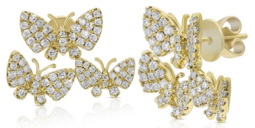 ESTATE 1.03CT DIAMOND 18K YELLOW GOLD TRIPLE BUTTERFLY FUN LOVE HANGING EARRINGS
