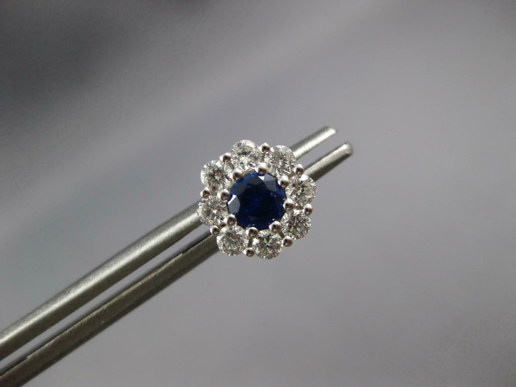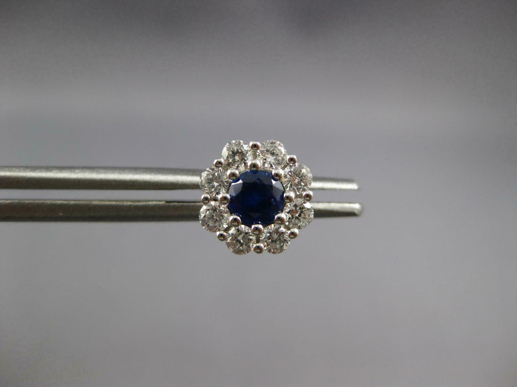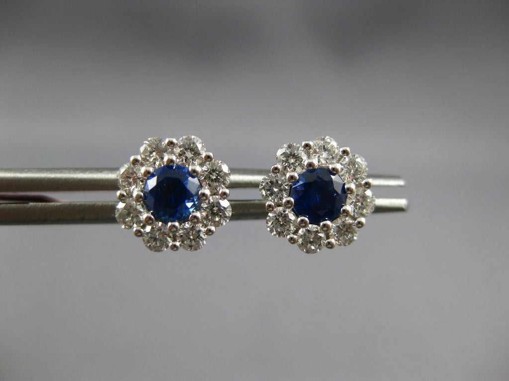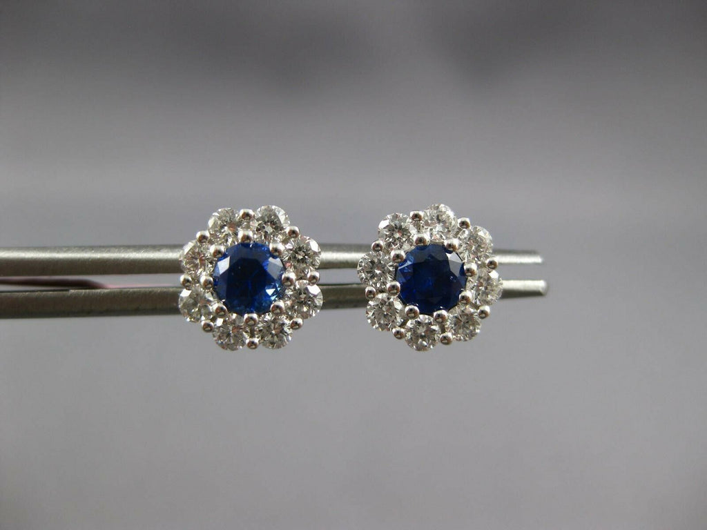 ESTATE 14KT WHITE GOLD STUD EARRINGS. 3D CLASSIC FLOWER DESIGN. DIAMONDS ARE F/G COLOR, VSSI CLARITY .60 CARATS. AAA SAPPHIRES ARE .43 CARATS. MEASURES 7.5MM WIDE. WRITTEN APPRAISAL AVAILABLE. COMES IN A PRESENTABLE GIFT BOX.