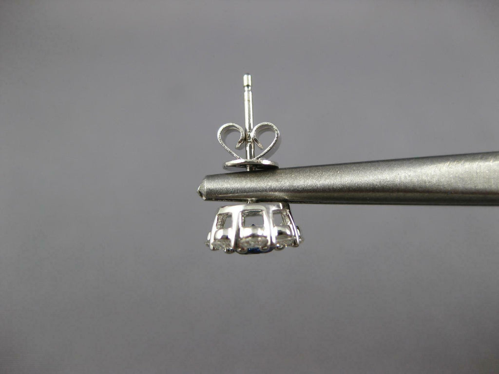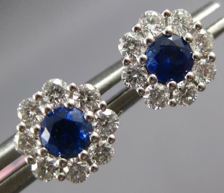 ESTATE 1.03CT DIAMOND & AAA SAPPHIRE 14K WHITE GOLD CLASSIC FLOWER STUD EARRINGS