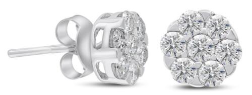 ESTATE 1.05CT DIAMOND 14KT WHITE GOLD 3D CLASSIC ROUND FLOWER STUD EARRINGS