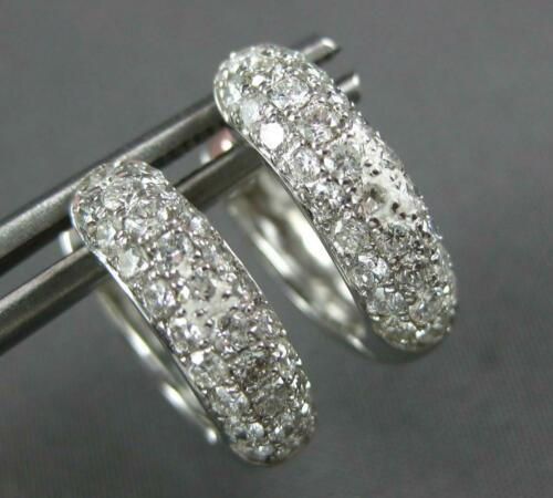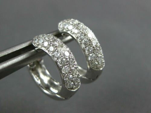 ESTATE 1.06CT DIAMOND 14KT WHITE GOLD 3D 3 ROW PAVE HUGGIE HOOP HANGING EARRINGS