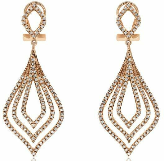 ESTATE 14KT ROSE GOLD CLIP ON HANGING EARRINGS. 3D MULTI LEAFDESIGN. DIAMONDS ARE F/G COLOR, VSSI CLARITY 1.07 CARATS. WRITTEN APPRAISAL AVAILABLE. COMES IN A PRESENTABLE GIFT BOX.