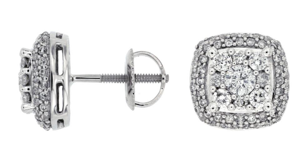 ESTATE 1.08CT DIAMOND 14K WHITE GOLD SQUARE DOUBLE HALO SCREW BACK STUD EARRINGS