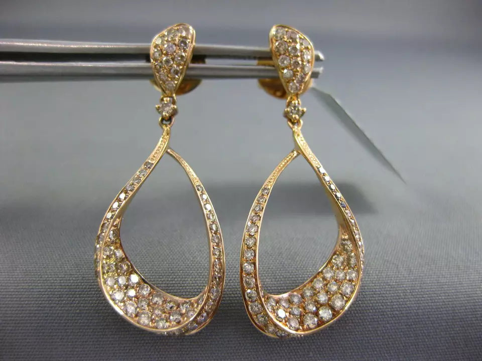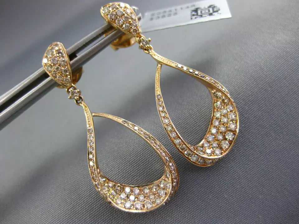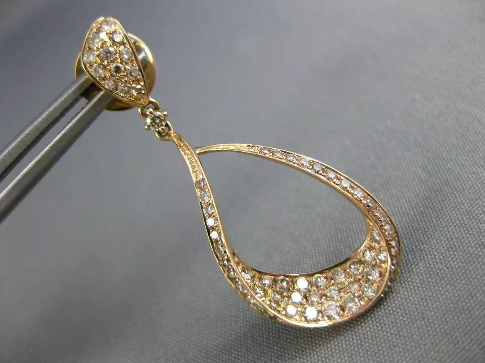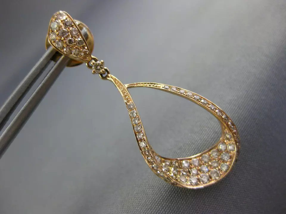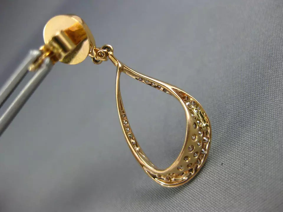 ESTATE 1.09CT DIAMOND 18KT ROSE GOLD 3D OPEN TEAR DROP PAVE HANGING EARRINGS