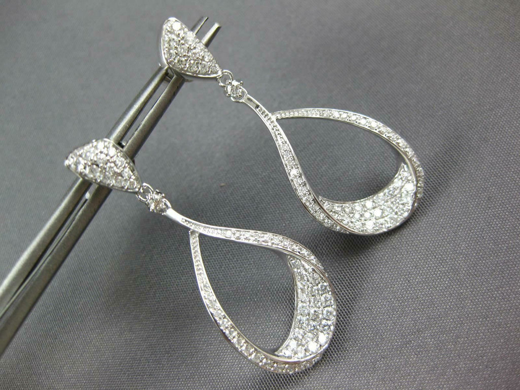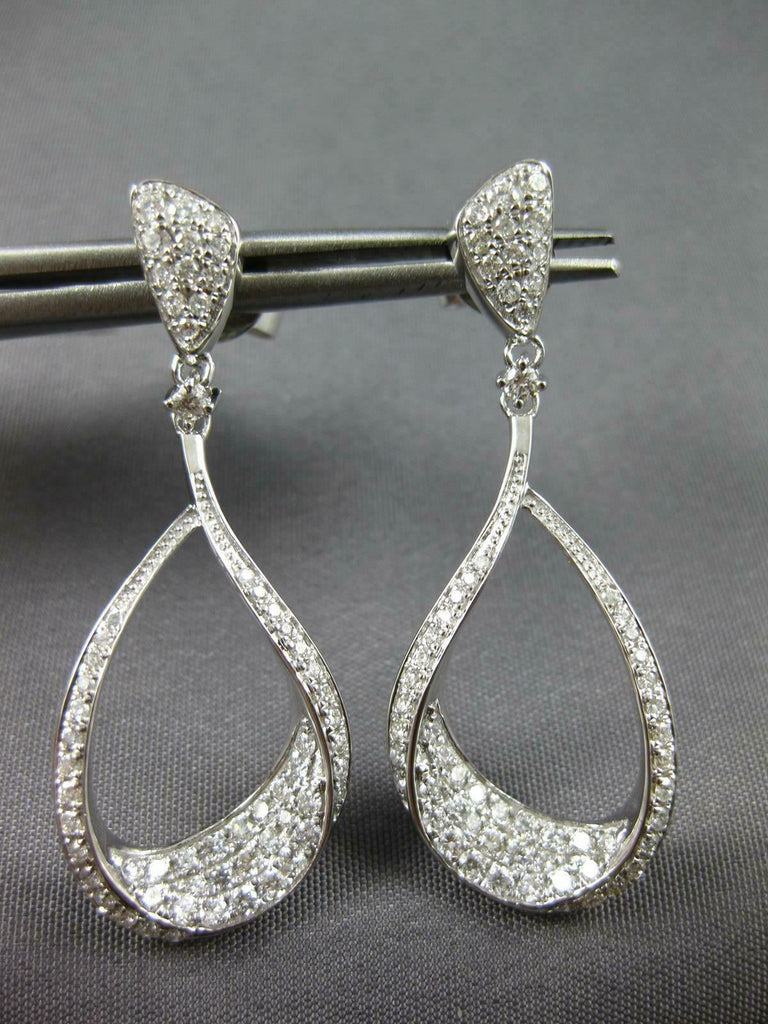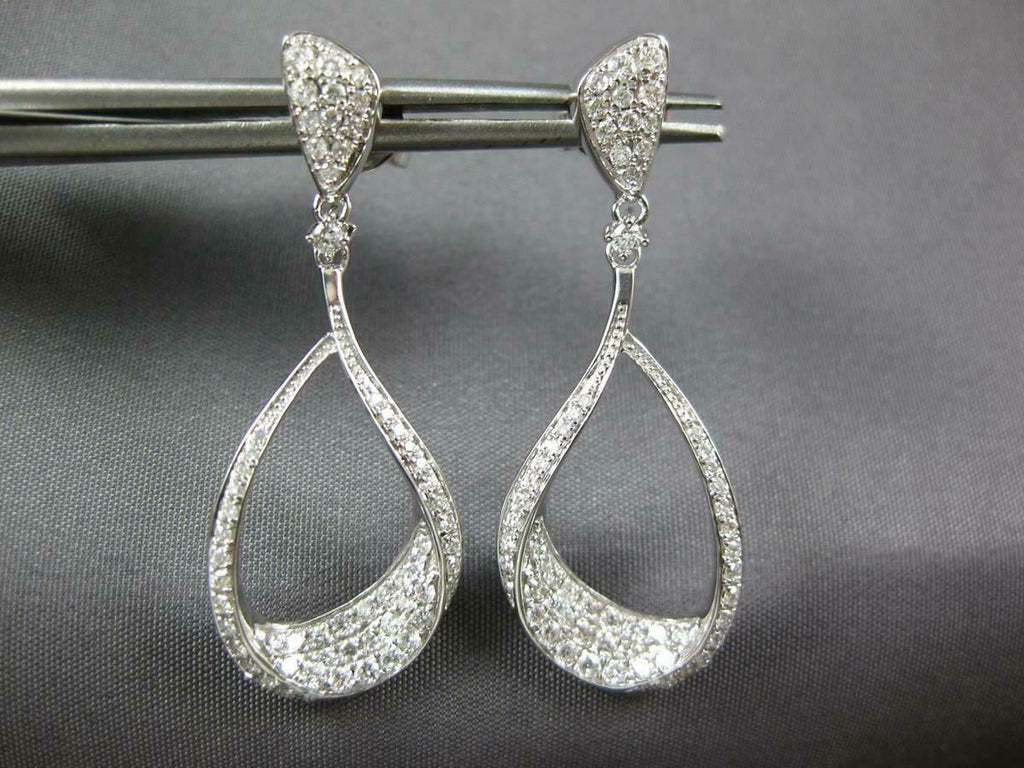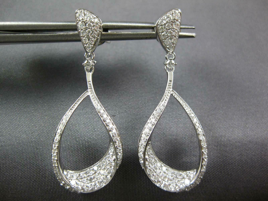 ESTATE 18KT WHITE GOLD HANGING EARRINGS. 3D INSIDE OUT TEAR DROP DESIGN. DIAMONDS ARE F/G COLOR, VSSI CLARITY 1.09 CARATS. MEASURES 37mm X 14mm. WRITTEN APPRAISAL AVAILABLE. COMES IN A PRESENTABLE GIFT BOX.