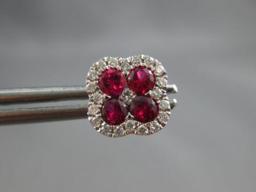 ESTATE 1.09CT DIAMOND & AAA RUBY 14KT WHITE GOLD 3D FLOWER SQUARE STUD EARRINGS