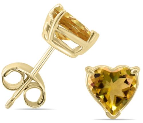 ESTATE 1.0CT AAA CITRINE 14KT YELLOW GOLD CLASSIC HEART SHAPE SOLITAIRE EARRINGS