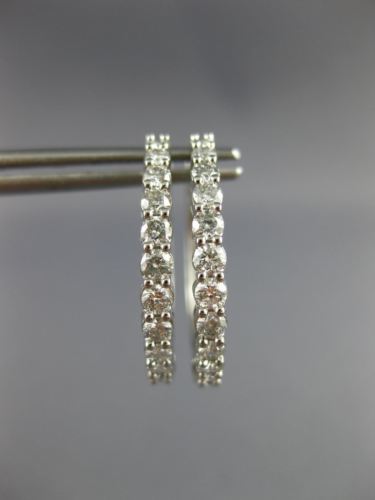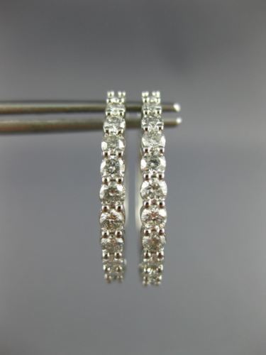 ESTATE 14KT WHITE GOLD HOOP EARRINGS. 3D CLASSIC DANCING DIAMOND SHARED PRONG DESIGN. ROUND DIAMONDS ARE F/G COLOR, VSSI CLARITY 1.0 CARATS. MEASURES 21mm X 2mm. WRITTEN APPRAISAL AVAILABLE. COMES IN A PRESENTABLE GIFT BOX.