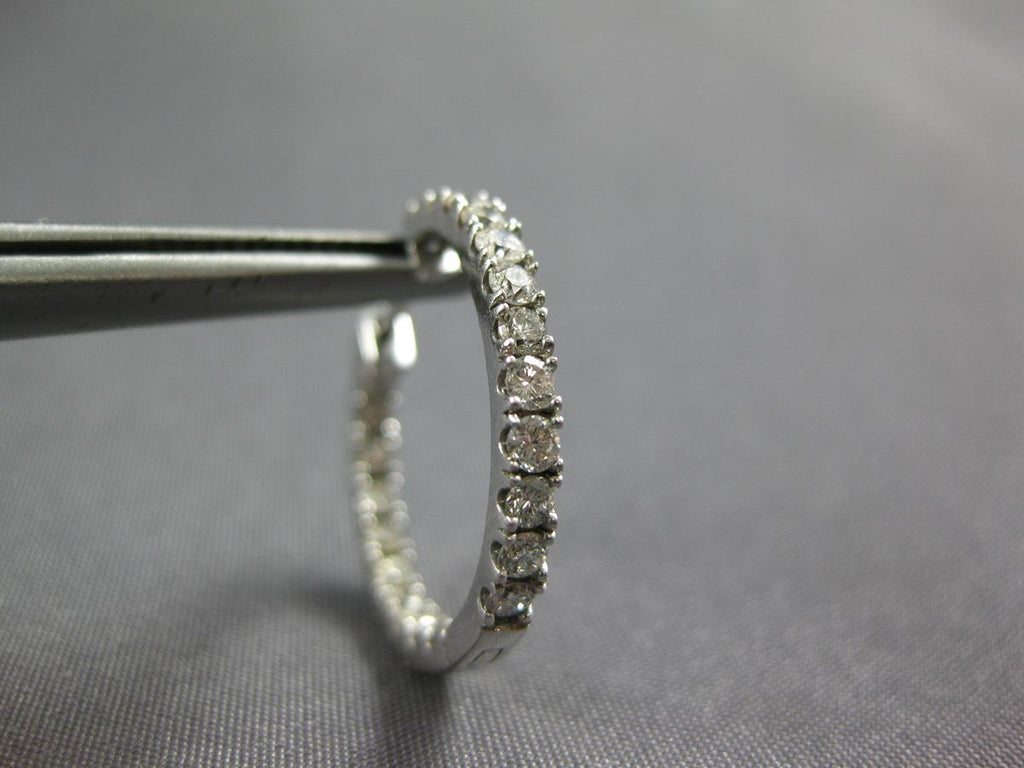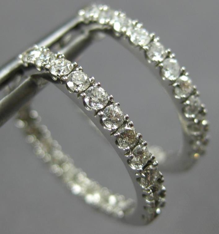 ESTATE 1.0CT DIAMOND 14K WHITE GOLD CLASSIC 2MM INSIDE OUT HOOP HUGGIE EARRINGS