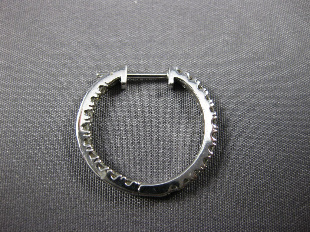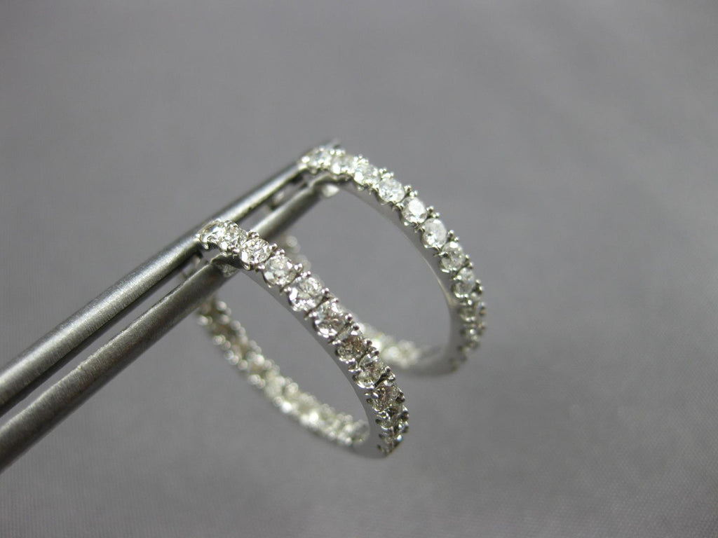 ESTATE 14KT WHITE GOLD HOOP HUGGIE EARRINGS. 3D CLASSIC 2MM INSIDE OUT DESIGN. DIAMONDS ARE F/G COLOR, VSSI CLARITY 1.0 CARATS. MEASURES 2mm x 19mm. WRITTEN APPRAISAL AVAILABLE. COMES IN A PRESENTABLE GIFT BOX.