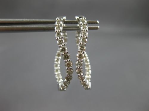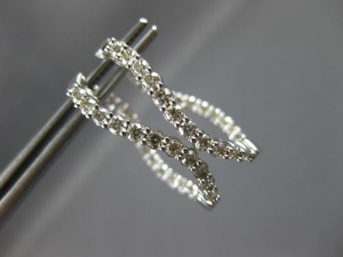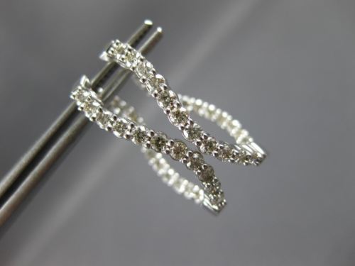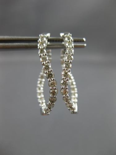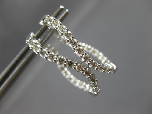 ESTATE 1.0CT DIAMOND 14K WHITE GOLD CLASSIC OVAL CURVED INSIDE OUT HOOP EARRINGS