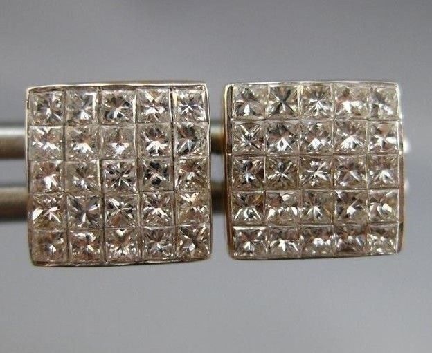 ESTATE 14KT WHITE & YELLOW GOLD STUD EARRINGS. 3D INVISIBLE SQUARE DESIGN. PRINCESS CUT DIAMONDS ARE F/G COLOR, VS CLARITY 1.0 CARATS. MEASURES 10mm WIDE. WRITTEN APPRAISAL AVAILABLE. COMES IN A PRESENTABLE GIFT BOX
