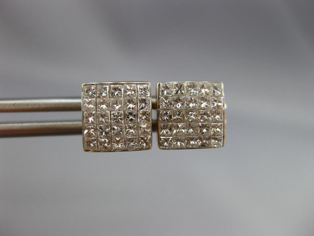 ESTATE 1.0CT DIAMOND 14KT TWO TONE GOLD 3D INVISIBLE SQUARE STUD EARRINGS #17965
