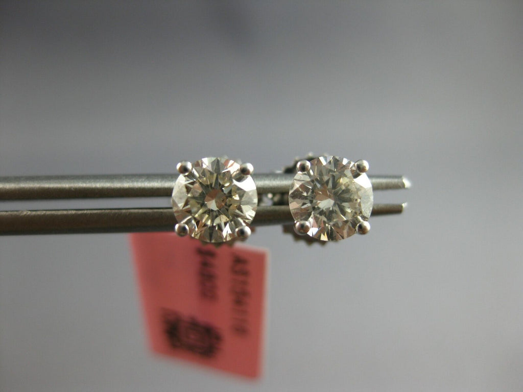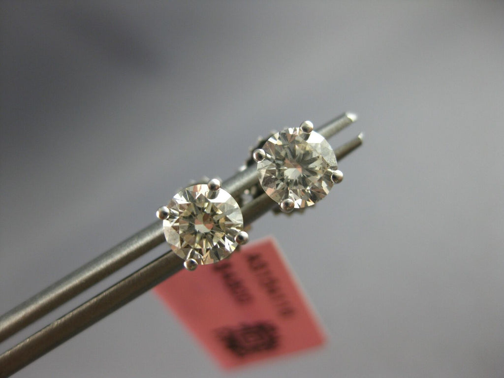 ESTATE 1.0CT DIAMOND 14KT WHITE GOLD 3D CLASSIC ROUND FOUR PRONG STUD EARRINGS