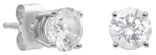 ESTATE 1.0CT DIAMOND 14KT WHITE GOLD 3D CLASSIC ROUND SOLITAIRE STUD EARRINGS