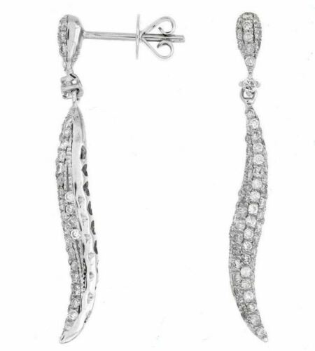 ESTATE 14KT WHITE GOLD HANGING EARRINGS. 3D MULTI ROW WAVE SWIRL DESIGN. DIAMONDS ARE F/G COLOR, VSSI CLARITY 1.0 CARATS. WRITTEN APPRAISAL AVAILABLE. COMES IN A PRESENTABLE GIFT BOX.
