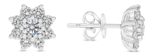 ESTATE 14KT WHITE GOLD STUD EARRINGS. 3D CLASSIC FLOWER STAR DESIGN. ROUND DIAMONDS ARE F/G COLOR, VS CLARITY 1.0 CARAT. WRITTEN APPRAISAL AVAILABLE. COMES IN A PRESENTABLE GIFT BOX.