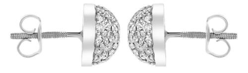 ESTATE 1.0CT DIAMOND 14KT WHITE GOLD 3D ROUND DOME SHAPE SCREWBACK STUD EARRINGS