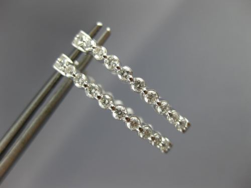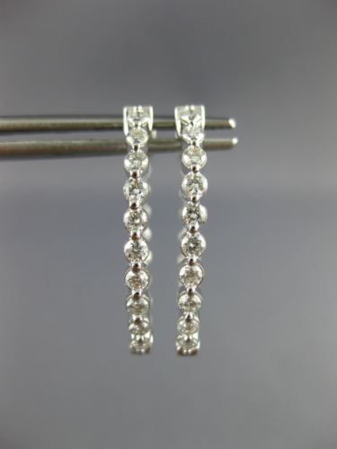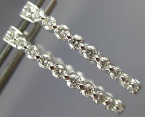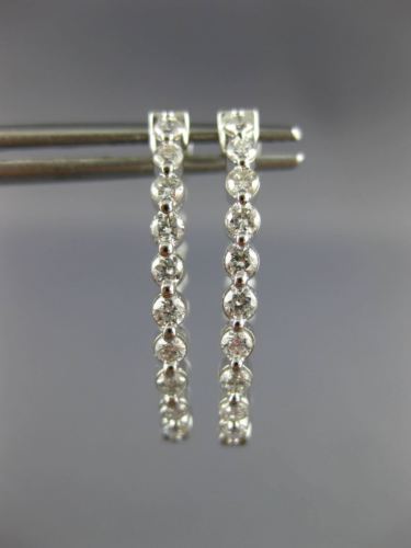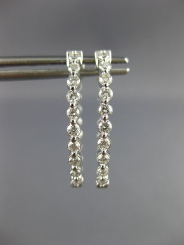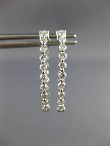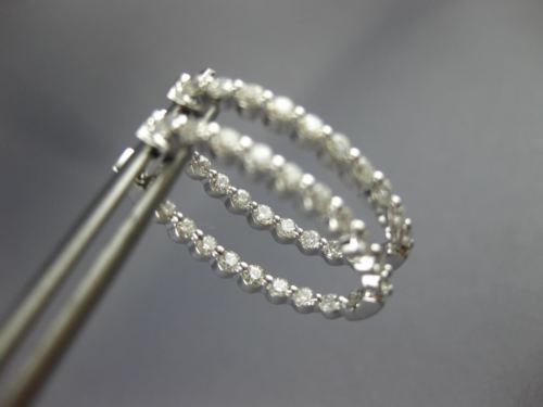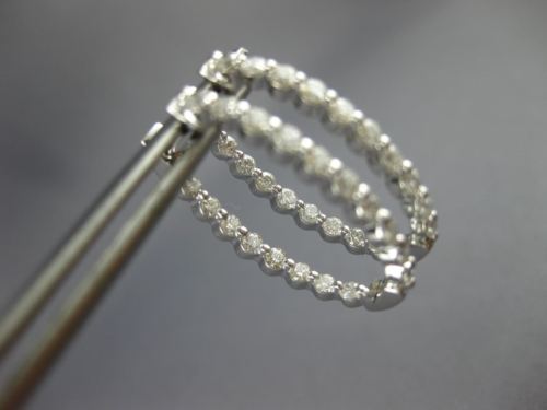 ESTATE 1.0CT DIAMOND 14KT WHITE GOLD 3D ROUND OVAL DOUBLE SIDED HOOP EARRINGS