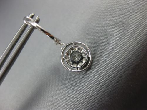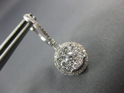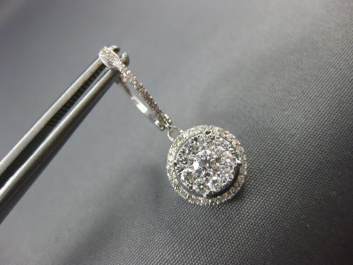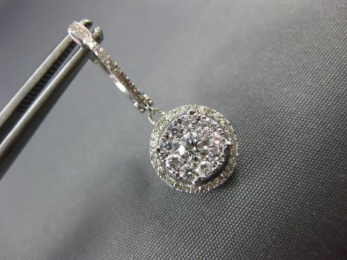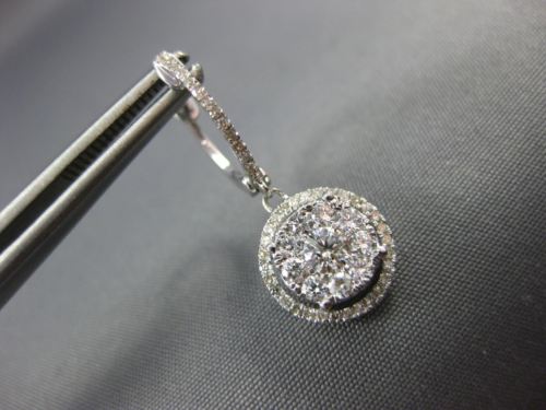 ESTATE 1.0CT DIAMOND 14KT WHITE GOLD ROUND CLUSTER HALO HUGGIE HANGING EARRINGS