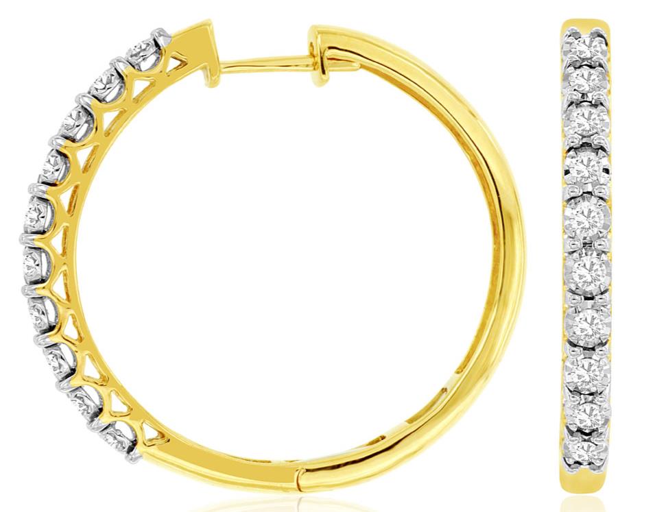 ESTATE 14KT YELLOW GOLD HUGGIE HOOP HANGING EARRINGS. 3D CLASSIC DESIGN. DIAMONDS ARE F/G COLOR, VSSI CLARITY 1.0 CARAT. WRITTEN APPRAISAL AVAILABLE. COMES IN A PRESENTABLE GIFT BOX.