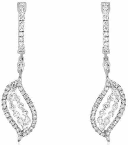 ESTATE 18KT WHITE GOLD FUN HUGGIE HANGING EARRINGS. 3D CLASSIC LEAF DESIGN. ROUND DIAMONDS ARE F/G COLOR, VSSI CLARITY 1.0 CARATS.