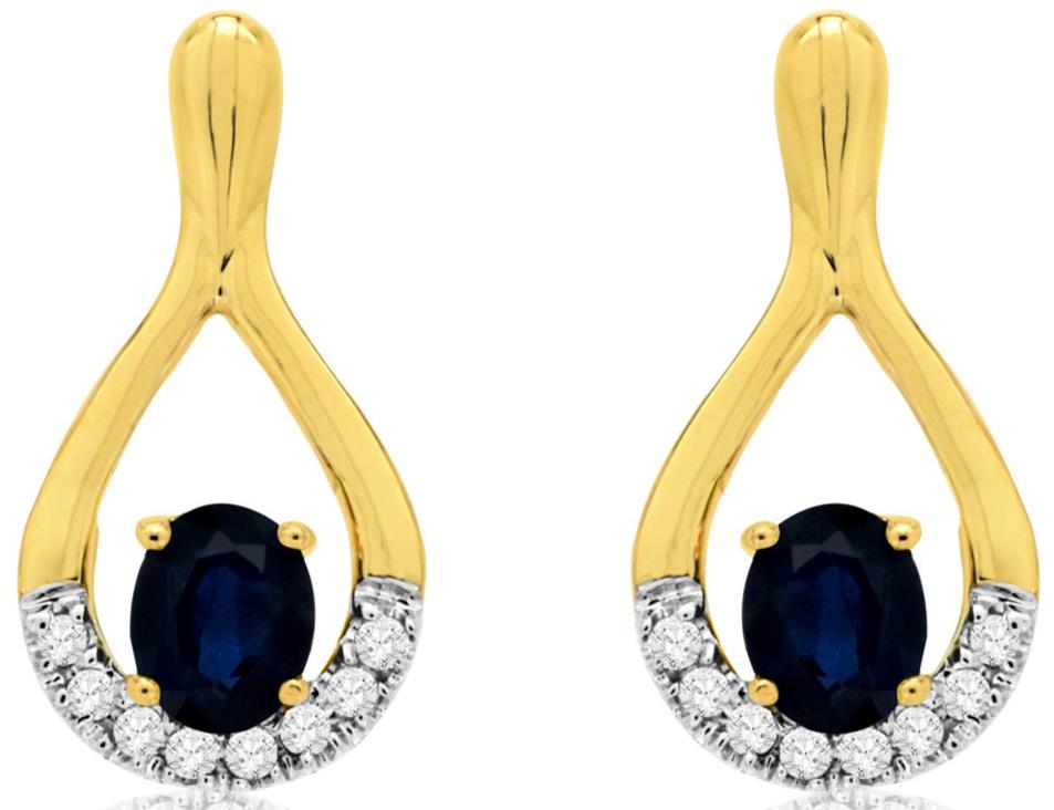 ESTATE 14KT YELLOW GOLD HANGING EARRINGS. 3D TEAR DROPDESIGN. ROUND DIAMONDS ARE F/G COLOR, VSSI CLARITY .12 CARATS. AAA OVAL SAPPHIRES ARE.88 CARATS.WRITTEN APPRAISAL AVAILABLE. COMES IN A PRESENTABLE GIFT BOX.