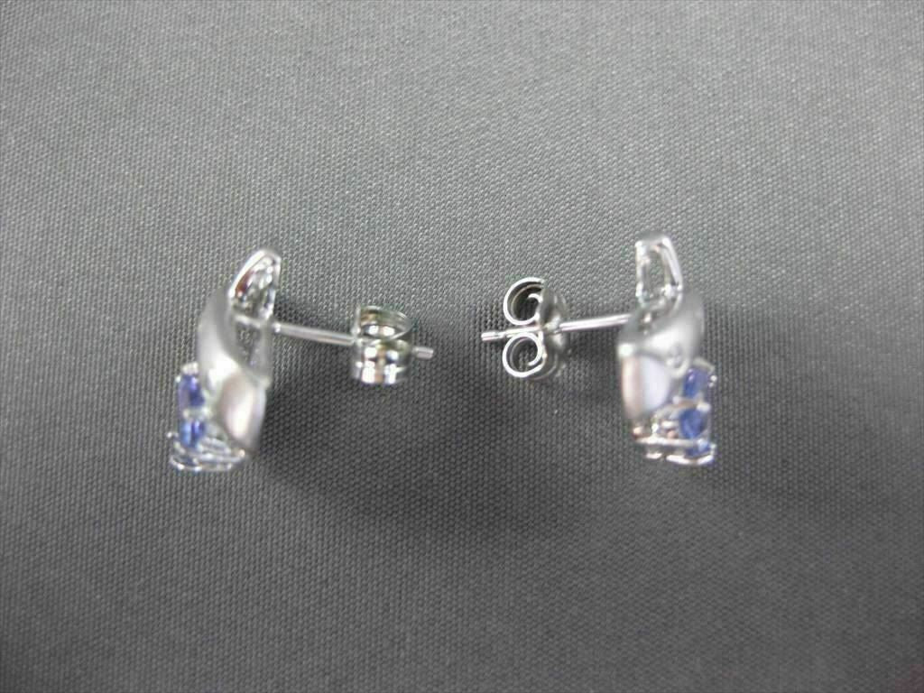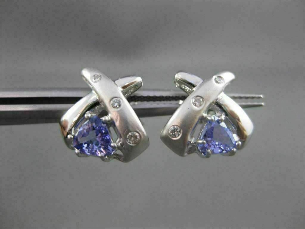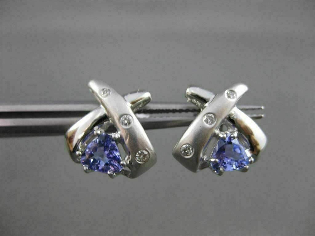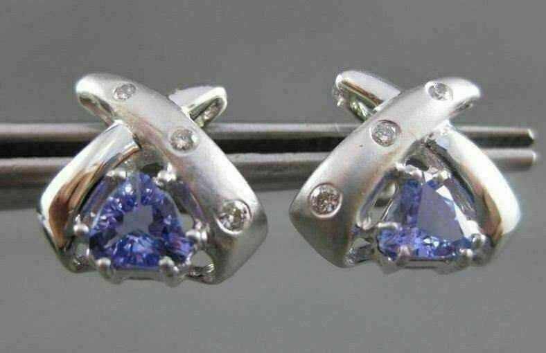 ESTATE 14KT WHITE GOLD STUD EARRINGS. TRILLION "X" DESIGN. DIAMONDS ARE F/G COLOR, VS CLARITY, .10 CARATS. AAA TANZANITES ARE .90 CARATS. MEASURES 12MM. WRITTEN APPRAISAL AVAILABLE. COMES IN A PRESENTABLE GIFT BOX.