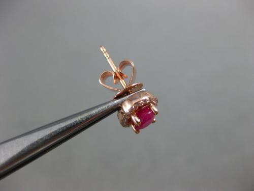 ESTATE 14KT ROSE GOLD STUD EARRINGS. 3D CLASSIC FLOWER DESIGN. DIAMONDS ARE F/G COLOR, VSSI CLARITY .18 CARATS. AAA RUBIES ARE .82 CARATS. MEASURES 9mm X 7mm. WRITTEN APPRAISAL AVAILABLE. COMES IN A PRESENTABLE GIFT BOX.
