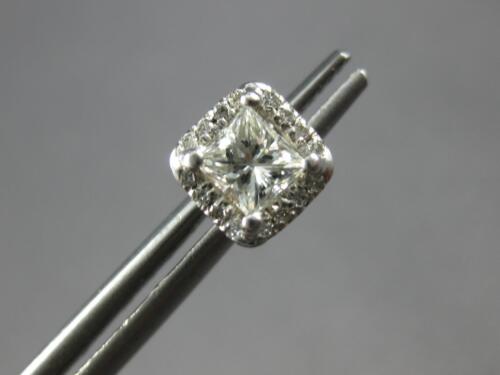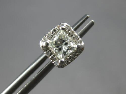 ESTATE 14KT WHITE GOLD STUD EARRINGS. 3D SQUARE HALO DESIGN. DIAMONDS ARE F/G COLOR, VSSI CLARITY. CENTER PRINCESS CUT DIAMOND IS .94 CARATS. SIDE ROUND DAIMONDS ARE .16 CARATS. MEASURES 7mm WIDE. WRITTEN APPRAISAL AVAILABLE. COMES IN A PRESENTABLE GIFT BOX.