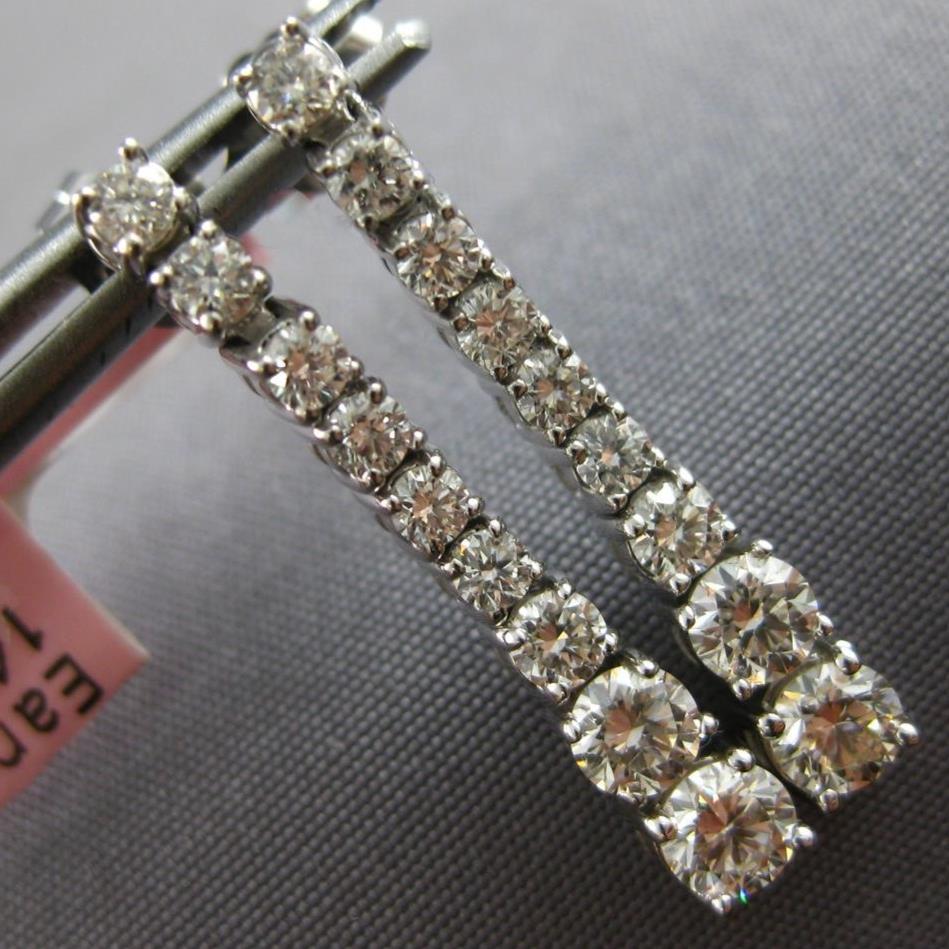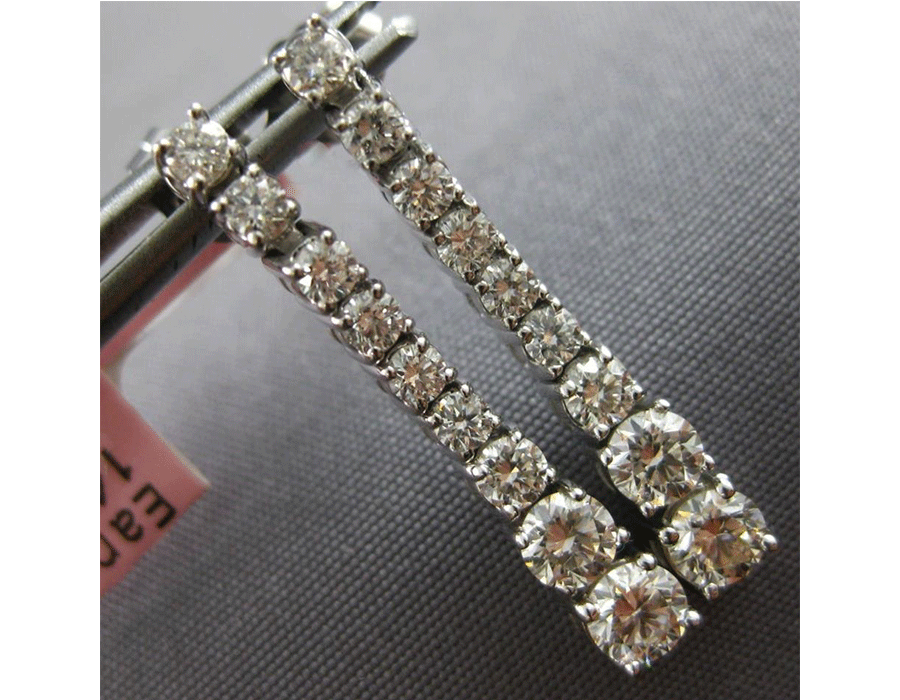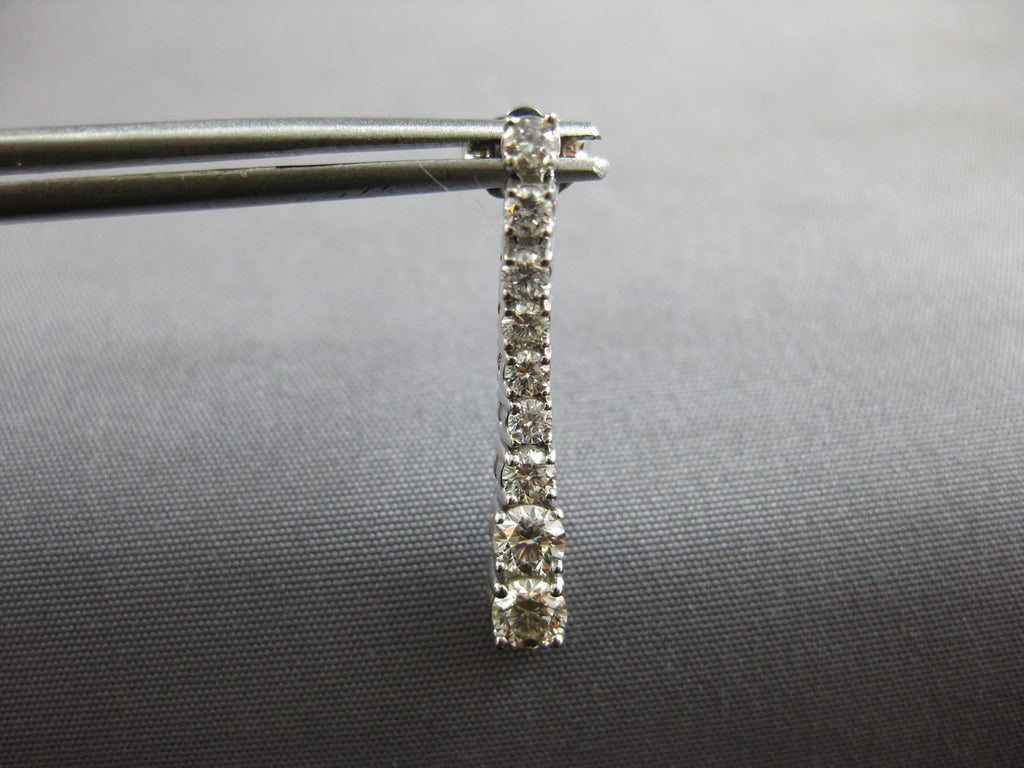 ESTATE 14KT WHITE GOLD HANGING EARRINGS. 3D CLASSIC JOURNEY BAR DESIGN. ROUND DIAMONDS ARE F/G COLOR, VVS-VS CLARITY 1.10 CARATS. MEASURES 26.5mm X 4mm. WRITTEN APPRAISAL AVAILABLE. COMES IN A PRESENTABLE GIFT BOX.