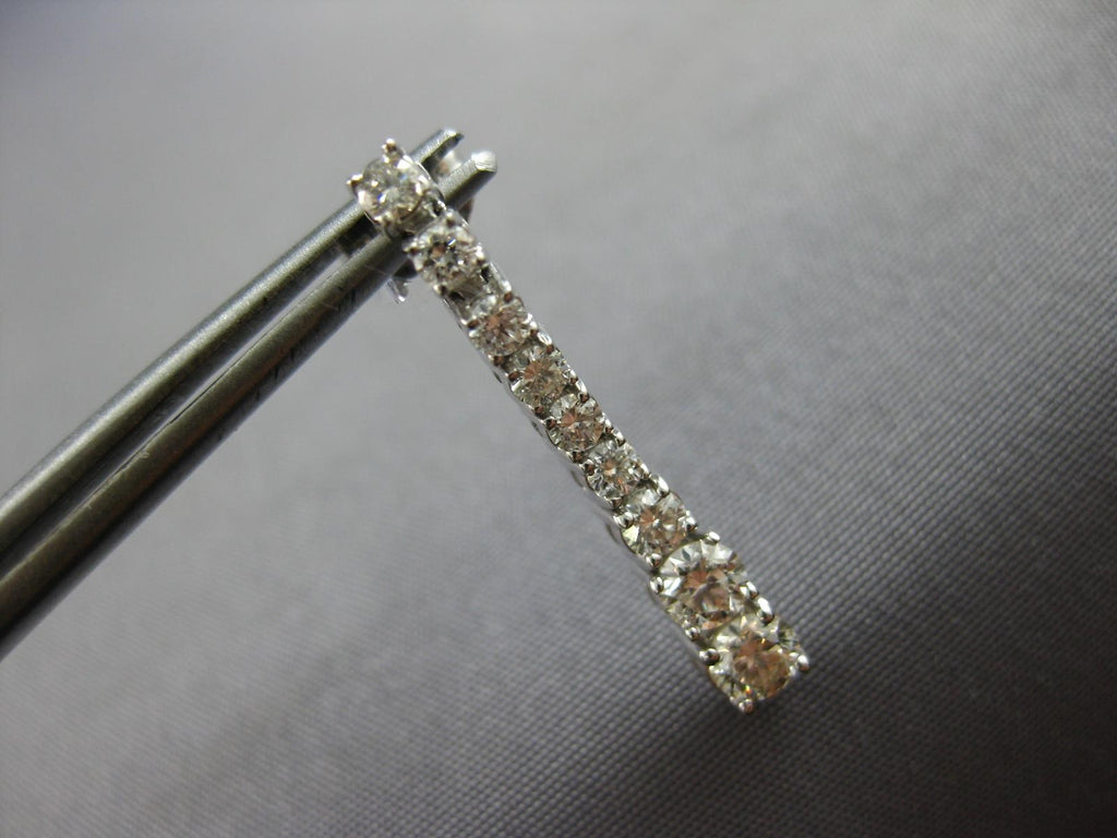 ESTATE 1.10CT DIAMOND 14KT WHITE GOLD ROUND CLASSIC JOURNEY BAR HANGING EARRINGS