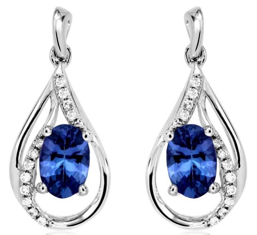 ESTATE 14KT WHITE GOLD HANGINGEARRINGS. 3D TEAR DROPDESIGN. ROUND DIAMONDS ARE F/G COLOR, VSSI CLARITY 0.10 CARATS. OVAL AAA TANZANITE ARE 1.0 CARAT.WRITTEN APPRAISAL AVAILABLE. COMES IN A PRESENTABLE GIFT BOX.
