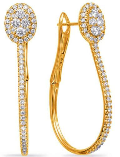 ESTATE 14KT YELLOW GOLD HOOP CLIP ON HANGING EARRINGS. 3D CLUSTER OVAL DESIGN. ROUND DIAMONDS ARE F/G COLOR, VSSI CLARITY 1.11 CARATS. MEASURES 24mm WIDE. WRITTEN APPRAISAL AVAILABLE. COMES IN A PRESENTABLE GIFT BOX.