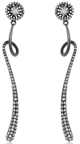 ESTATE 18KT BLACK GOLD FUN HANGING EARRINGS. 3D FLOWER DOUBLE SWIRL DESIGN. DIAMONDS ARE F/G COLOR, VSSI CLARITY 1.11 CARATS. WRITTEN APPRAISAL AVAILABLE. COMES IN A PRESENTABLE GIFT BOX.