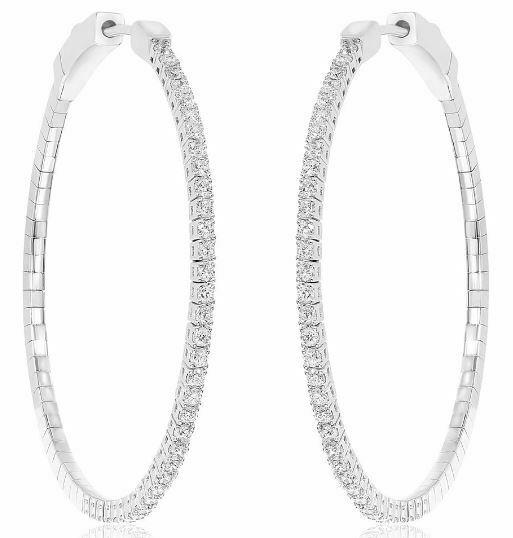 ESTATE 18KT WHITE GOLD HOOP HANGING EARRINGS. 3D ROUND CLASSICDESIGN. DIAMONDS ARE F/G COLOR, VSSI CLARITY 1.11 CARATS. WRITTEN APPRAISAL AVAILABLE. COMES IN A PRESENTABLE GIFT BOX.