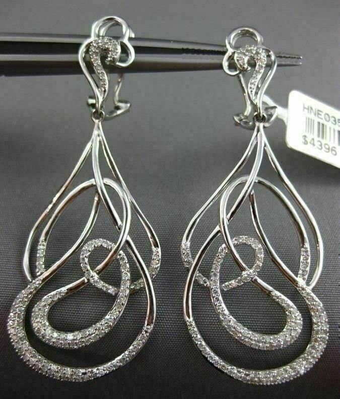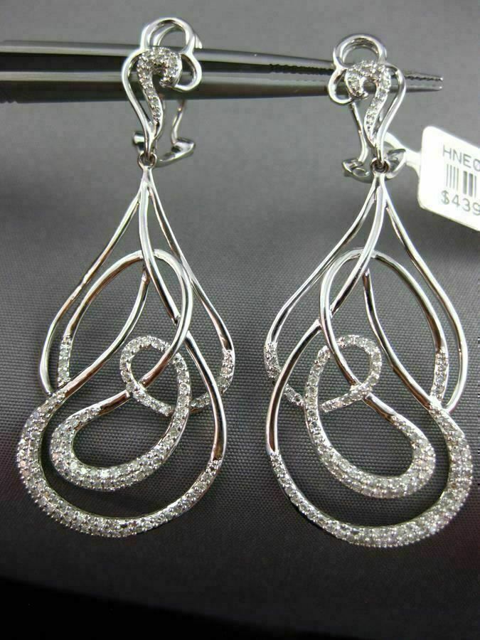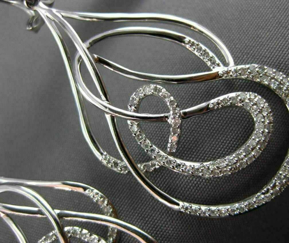 ESTATE 18KT WHITE GOLD CLIP ON HANGING EARRINGS. 3D MULTI WAVE DESIGN. DIAMONDS ARE F/G COLOR, VSSI CLARITY 1.17 CARATS. MEASURES 53mm X 22mm WIDE. WRITTEN APPRAISAL AVAILABLE. COMES IN A PRESENTABLE GIFT BOX.