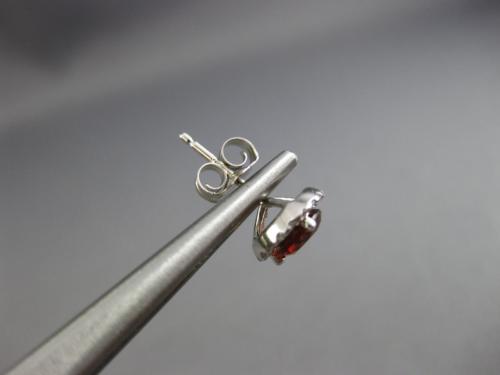 ESTATE 14KT WHITE GOLD MARTINI STUD EARRINGS. 3D CLASSIC ROUND HALO DESIGN. DIAMONDS ARE F/G COLOR, VSSI CLARITY, .17 CARATS. AAA GARNETS ARE 1.0 CARATS. MEASURES 7mm WIDE. WRITTEN APPRAISAL AVAILABLE. COMES IN A PRESENTABLE GIFT BOX.